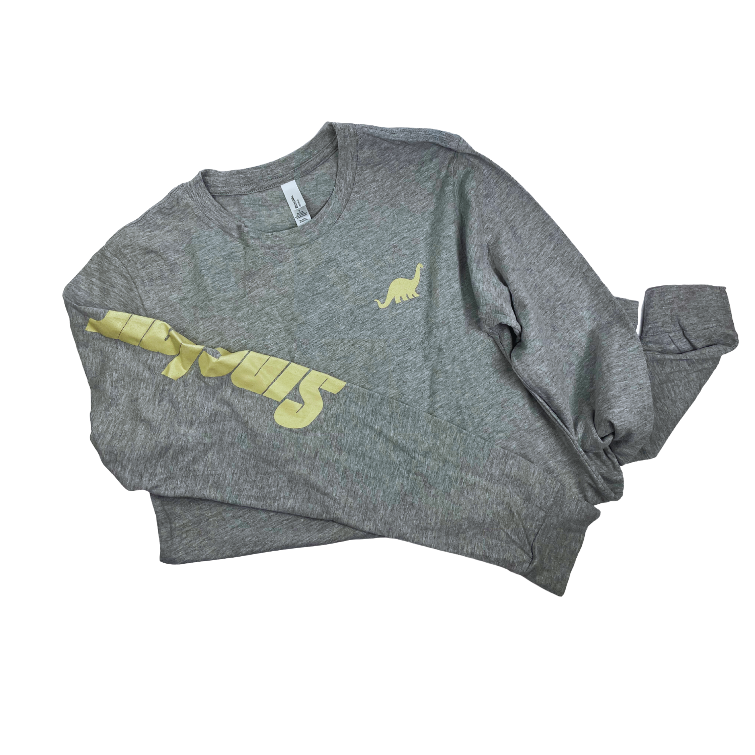 This classic unisex jersey t-shirt from Bella+Canvas fits like a well-loved favorite, featuring a classic crew neck, long sleeves and superior combed and ring-spun jersey cotton that acts as a blank canvas for printing. Features DINO on left chest and Sinclair along right sleeve.