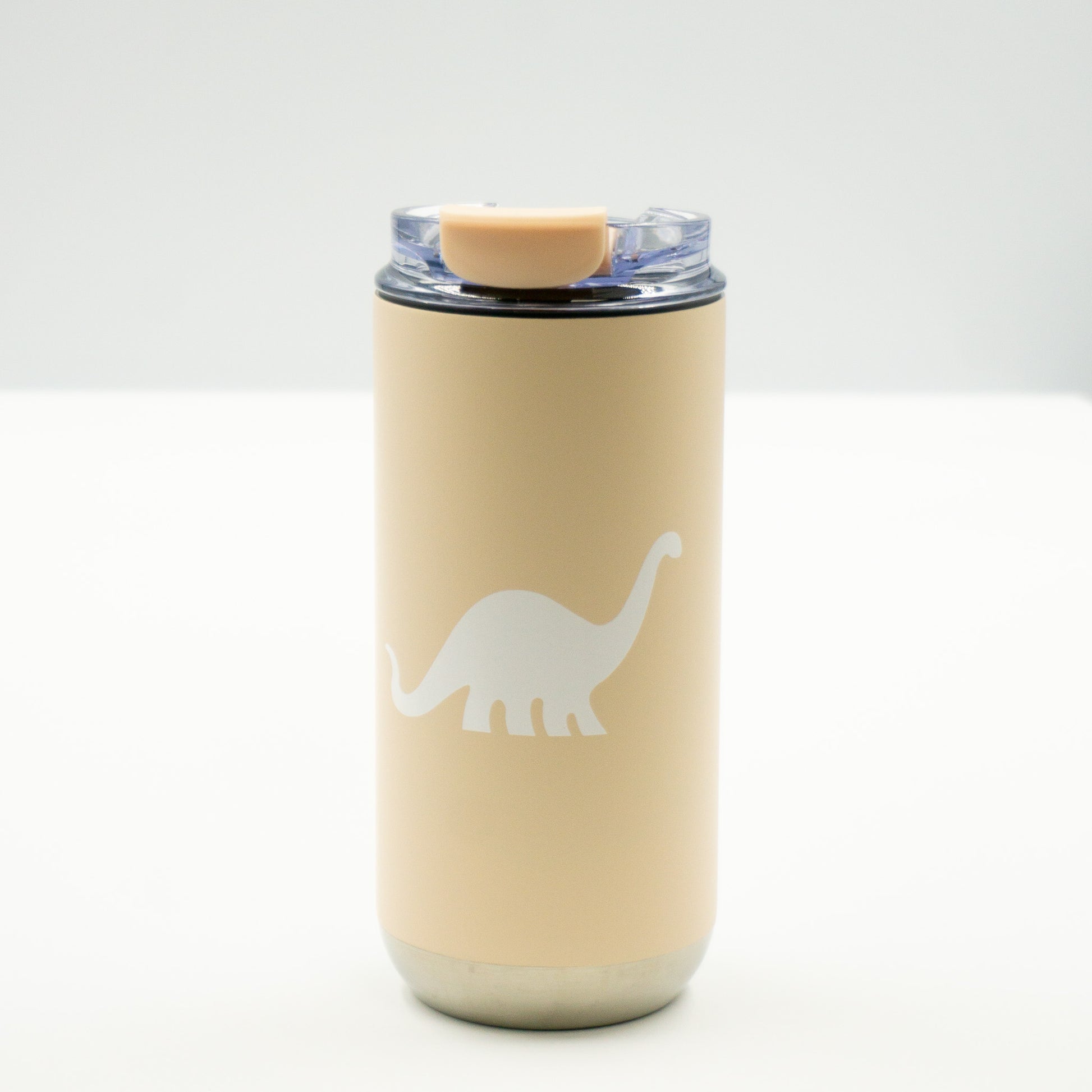 This 16 oz vacuum-insulated tumbler features a soft matte finish and a charming white DINO that’s sure to spark smiles. Built with double-wall stainless steel and topped with a clear acrylic lid, it keeps drinks hot or cold while keeping spills at bay with a screw-on lid and flip-up opening.